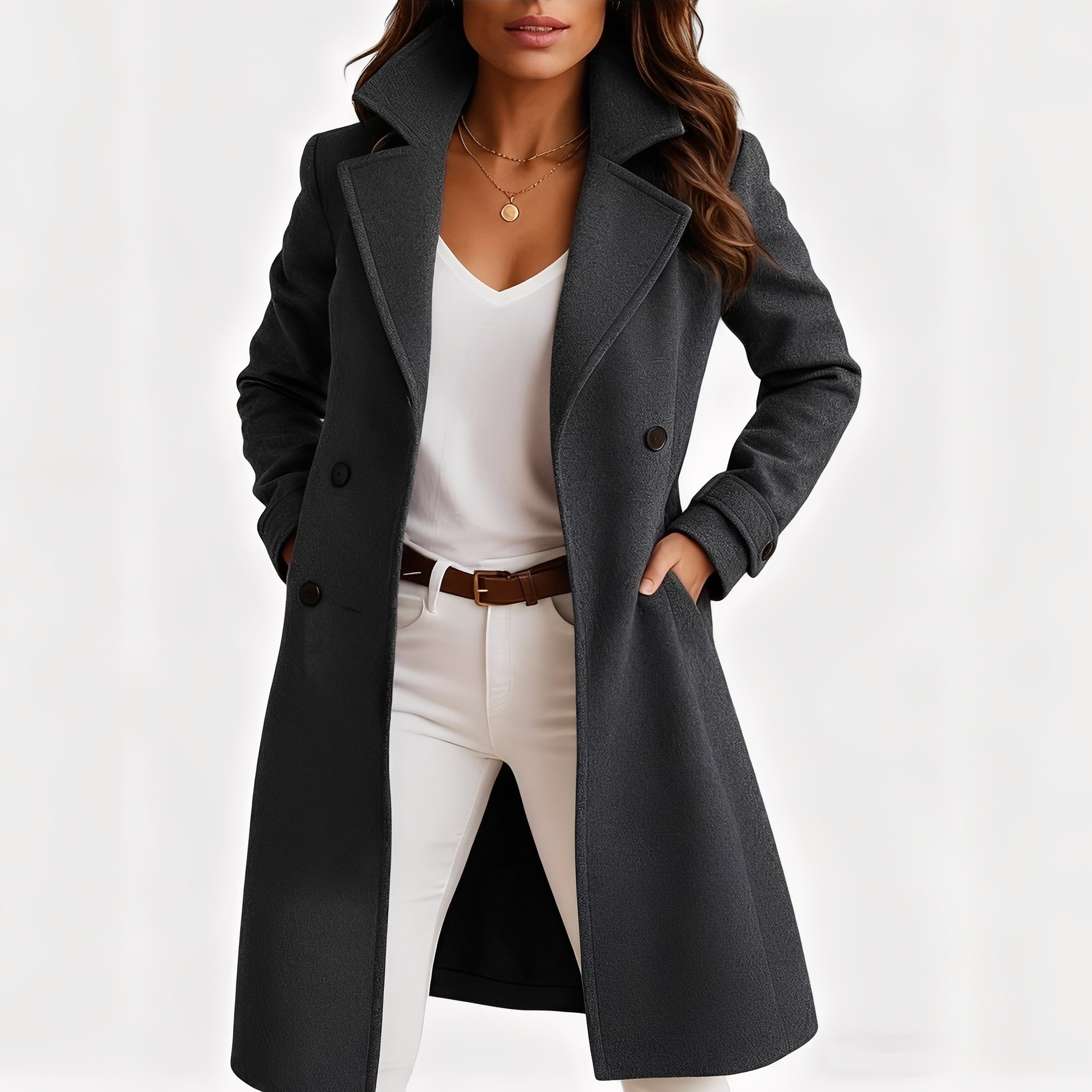 Camille - Elegant coat with single-breasted design and pockets for women