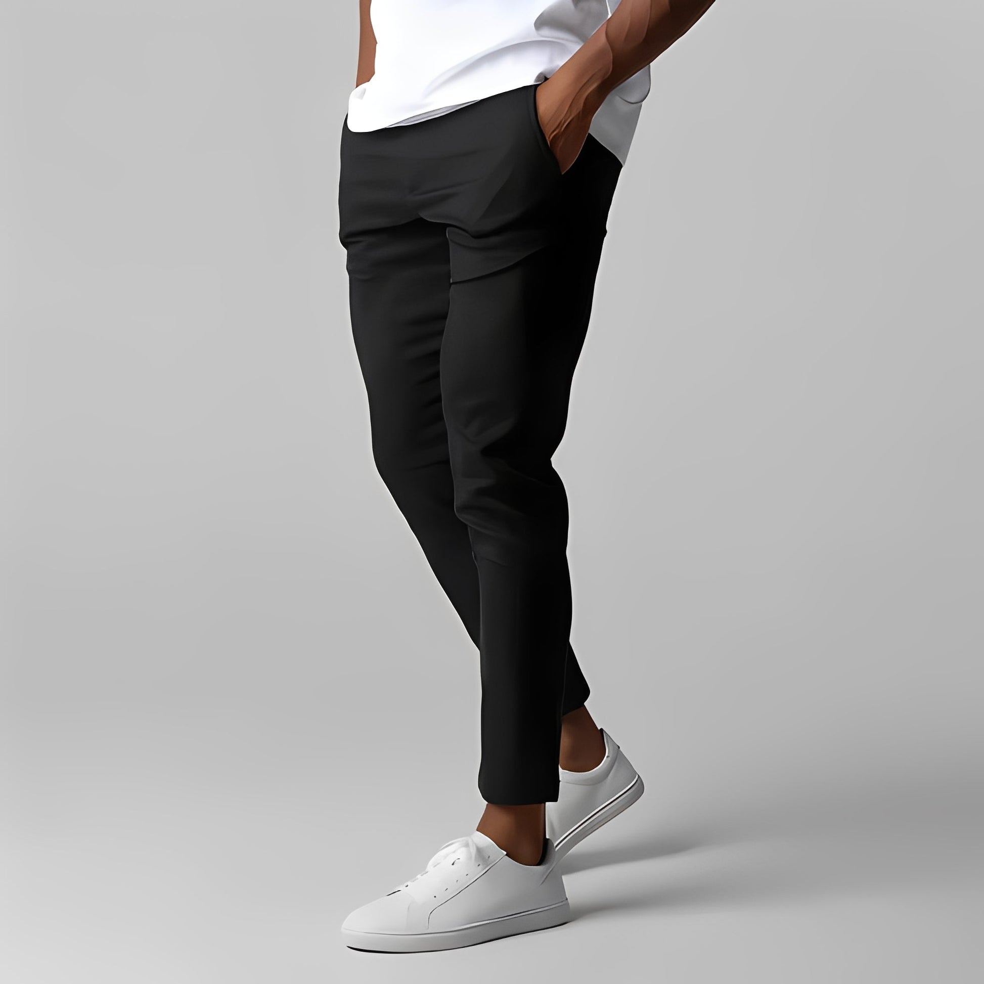 Discover our high-quality Gwenaël stretch pants, perfectly combining comfort, flexibility, and modern style. Made from a soft and stretchy material that adapts to your movements, they are ideal for office workdays as well as relaxed weekends. Their simple and versatile design allows you to pair them with all your outfits, from elegant shirts and blazers to casual t-shirts and sneakers. Durable and lightweight, they offer all-day comfort without sacrificing style.