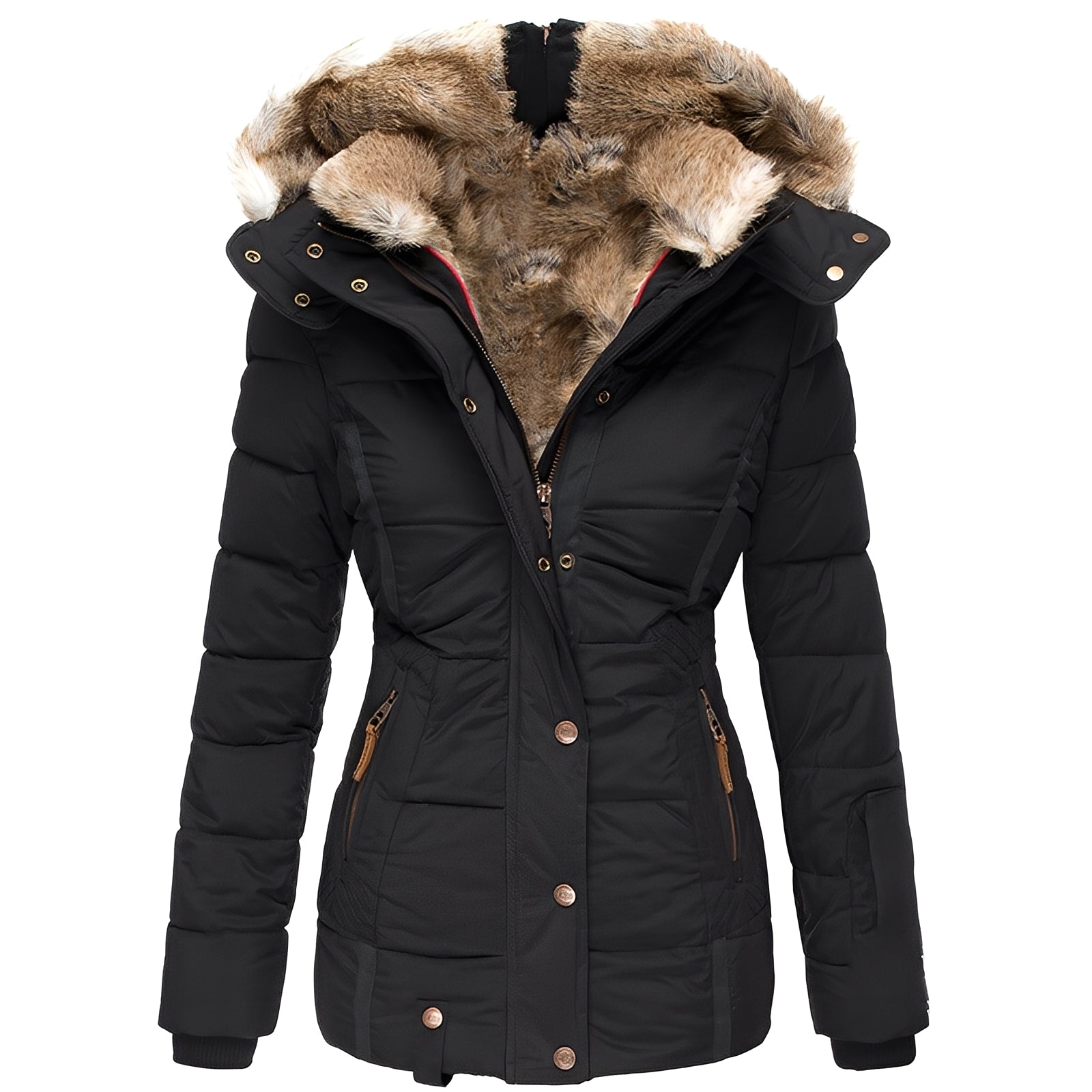 - Elegant fur-lined hood — Provides style and extra protection against cold and snow.
