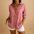 Eine zeitlose Baumwollbluse, die Komfort, Einfachheit und Eleganz im Alltag vereint.