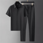Das Set Alexander – Luxe Herrenset mit Polo und Hose bringt Leichtigkeit und Komfort in Ihre Garderobe. Das Set kombiniert ein stilvolles Polo-Shirt mit einer passenden Hose aus erstklassigen Materialien für ein gepflegtes und harmonisches Erscheinungsbild. Es ist ideal für entspannte Ausflüge, gesellschaftliche Events oder lockere Bürotage und garantiert stets einen modischen und eleganten Look. Dank seines zeitlosen Designs und der schlanken Passform ist es eine vielseitige Ergänzung für die Garderobe jedes Mannes. Erleben Sie den idealen Mix aus Luxus und Komfort im Alltag mit dem Alexander-Set.