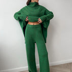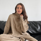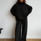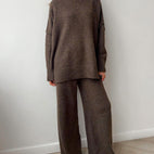Amara steht für pure Gemütlichkeit mit einem Hauch von Luxus. Dieses Rollkragen Strickhosen Set vereint einen weichen Pullover mit passender Hose und sorgt so für ein harmonisches, elegantes Gesamtbild. Das dehnbare Strickmaterial schmiegt sich angenehm an die Haut und bietet Bewegungsfreiheit, ohne an Form zu verlieren. Perfekt für entspannte Tage oder stilvolle Homewear-Momente – Amara ist der Inbegriff von Komfort und Klasse.