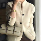 Bereichern Sie Ihre Garderobe mit dem Kaschmir-Cardigan „Arlette“, wo Bequemlichkeit auf klassischen Stil trifft.