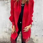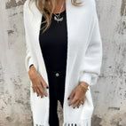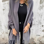 Diese Jacke kombiniert weiche Materialien mit eleganten Details wie einer dekorativen Quaste, die Ihrem Outfit das gewisse Etwas verleiht. Der lockere Schnitt sorgt für Bewegungsfreiheit und ein angenehmes Tragegefühl. Ideal für kühle Tage, ob zu Hause, im Büro oder unterwegs. Ein vielseitiges Kleidungsstück, das Komfort mit stilvollem Chic vereint.