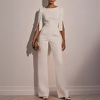 Veredeln Sie Ihren Stil mit unserem Carolane Chic Overall, der über ausgestellte Ärmel verfügt. Dieses elegante Stück kombiniert Raffinesse mit Komfort. Die beeindruckenden ausgestellten Ärmel sind dezent mit Perlen verziert und verleihen Ihnen einen luxuriösen Touch, ohne übertrieben zu wirken. Gefertigt aus weichem, hochwertigem Stoff, passt er sich Ihrer Figur an und bietet Bewegungsfreiheit. Sein klassischer Schnitt macht diesen Overall vielseitig einsetzbar, geeignet für diverse Anlässe von formellen Abendessen bis hin zu lockeren Treffen. Mit einem Design, das moderne Mode mit zeitloser Eleganz vereint, darf dieses Kleidungsstück im Kleiderschrank keiner Frau fehlen, die sich stilvoll und selbstsicher fühlen möchte.