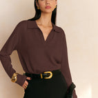 WINTERVERKAUFDionne - Elegante Satinbluse für Damen mit langen Ärmeln