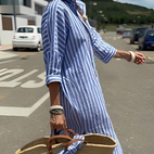 Geben Sie Ihrem Alltagsstil mit diesem klassischen und vielseitigen gestreiften Hemdkleid das gewisse Etwas.