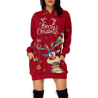 Dieses Weihnachtskleid für Damen vereint weiches Material mit einem charmanten Rentierdesign. Die Kapuze bietet zusätzlichen Komfort und verleiht einen entspannten, modernen Stil. Perfekt für Weihnachtsfeiern, entspannte Tage zu Hause oder gemütliche Wintertage. Ein pflegeleichtes Kleid, das festliche Atmosphäre mit Gemütlichkeit verbindet.