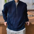 Dieser Herrenpullover verbindet weiches Strickmaterial mit einem praktischen Halb-Reißverschluss-Kragen, der nach Bedarf geöffnet oder geschlossen werden kann. Die erstklassige Materialmischung bietet angenehme Wärme und Komfort bei kühlem Wetter. Der moderne, entspannte Schnitt macht ihn vielseitig kombinierbar – perfekt zu Jeans, Chinos oder als Schicht unter einer Jacke. Ein Kleidungsstück, das Stil, Komfort und Vielseitigkeit ideal vereint.