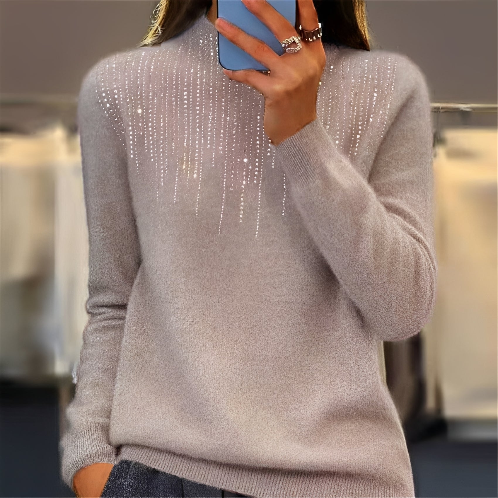 Deshalb gehört „Lucia – Glitzernder Pullover mit halbhohem Rollkragen für Damen“ in Ihren Kleiderschrank: