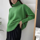 Erfrischen Sie Ihre Wintergarderobe mit diesem warmen, stilvollen und vielseitigen Oversize-Rollkragenpullover für Damen.
