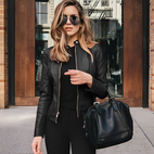 Lernen Sie unsere stilvolle, mit einem Reißverschluss ausgestattete Bikerjacke für Damen kennen, Lysiane, die modernen Stil mit täglichem Komfort kombiniert. Sie ist aus hochwertigen Materialien gefertigt und bietet Langlebigkeit, Bequemlichkeit und ein edles Finish, das zu jedem Outfit passt. Der vordere Reißverschluss erleichtert das Anziehen, während der figurbetonte Schnitt Ihre Figur betont. Ideal für Freizeitaktivitäten, Abendveranstaltungen oder zum Überwerfen über Kleider und Tops, ist diese Jacke ein unverzichtbares Stück für modebewusste Damen.