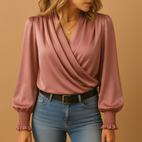 WINTERVERKAUFDionne - Elegante Satinbluse für Damen mit langen Ärmeln