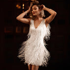 Mégane - Damen-Fransen- und Federkleid für Cocktails