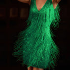 Lernen Sie unser Mégane-Cocktailkleid kennen, das mit Fransen und Federn beeindruckt - ein beeindruckendes Kleidungsstück für besondere Abende. Es kombiniert verspielte Fransen-Designs mit zarten Federn, die jedem Schritt Eleganz und Dynamik verleihen. Hergestellt aus erstklassigen Stoffen, bietet es eine schmeichelnde Passform und bleibt dabei angenehm tragbar für Partys, Events oder besondere Anlässe. Sein elegantes Design lässt sich mühelos mit modischen Absätzen und Accessoires für einen vollständigen, stilvollen Look kombinieren. Verwandeln Sie jeden Auftritt in einen unvergesslichen Moment mit diesem spektakulären Cocktailkleid.