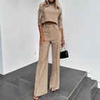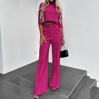 Verleihen Sie Ihrer Garderobe mit unserem modernen Oberteil- und Hosen-Set neuen Glanz, wo moderner Stil auf alltäglichen Komfort trifft.