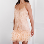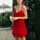 Monique - Schickes Damenkleid mit Fransen und Federn