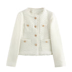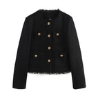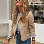 Diese kurze Tweedjacke für Damen, Muriel mit Knöpfen, vereint zeitloses Design mit lässiger Eleganz. Sie ist so gestaltet, dass sie eine schmeichelhafte, körperbetonte Passform bietet und sich perfekt mit Hosen, Röcken oder Jeans kombinieren lässt, sei es im Büro oder am Wochenende. Der klassische Verschluss mit Knöpfen fügt eine elegante Note hinzu, während der strukturierte Tweedstoff jedem Outfit Tiefe und Stil verleiht. Leicht, aber formgebend, bietet sie maximalen Komfort und erhält gleichzeitig eine stilvolle Silhouette. Ein vielseitiges Essentials für Frauen, die Mode, Komfort und Selbstvertrauen schätzen.