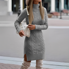 Das Myriam Winterkleid mit langen Ärmeln und Rollkragen für Damen kombiniert Behaglichkeit, Wärme und klassischen Stil für kalte Tage. Gefertigt aus weichem Strickstoff, hält es Sie warm und bietet eine vorteilhafte Silhouette. Die langen Ärmel und der hohe Rollkragen bieten zusätzliche Wärme, ideal für entspannte Ausflüge, die Arbeit oder winterliche Treffen. Dank des vielseitigen Designs lässt es sich einfach mit Stiefeln oder Sneakers für einen unkomplizierten, dennoch eleganten Look kombinieren. Unverzichtbar für die Wintergarderobe von Frauen, die Eleganz und Komfort in einem Kleidungsstück wünschen.