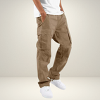 Noah – Cargo Hosen mit Taschen für Herren vereinen Komfort, Vielseitigkeit und modernen Stil in einem. Mit ihrer robusten Verarbeitung sind sie ideal für Herbst und Winter geeignet und begleiten Sie zuverlässig durch Alltag und Freizeit. Die praktischen Cargotaschen bieten ausreichend Stauraum für alle wichtigen Dinge, während der bequeme Schnitt uneingeschränkte Bewegungsfreiheit ermöglicht. Ob beim Spaziergang, im Büro oder auf Reisen – diese Hosen passen sich jedem Anlass an und verleihen Ihrem Look eine lässige Note.