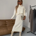 Zweiteiliges Strickkleid-Set mit Rollkragen und langer Silhouette