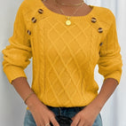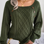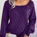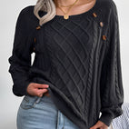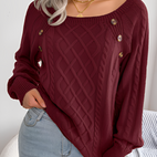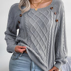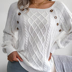 Dieser Strickpullover besticht durch sein angenehmes Material und das auffällige Knopfdesign, das Ihrem Outfit eine besondere Note verleiht. Der lockere Schnitt sorgt für Bewegungsfreiheit und hohen Tragekomfort den ganzen Tag über. Perfekt für kühlere Tage, sei es zu Hause, im Büro oder in der Freizeit. Ein Kleidungsstück, das Gemütlichkeit und stilvolles Design vereint.